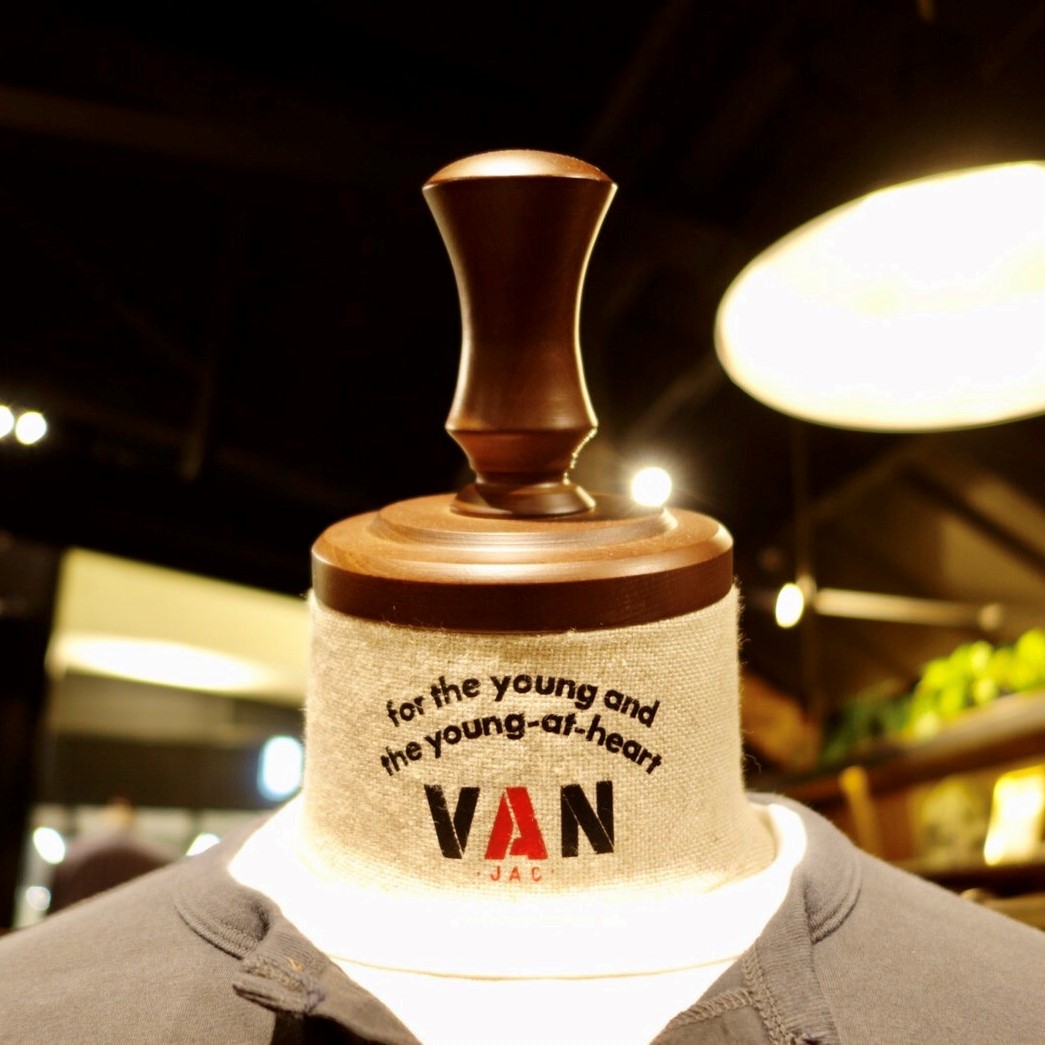 VAN SHOP HIBIYAさまへは、ネックに施したロゴデザインが映えるトルソを制作させていただきました。日本にアメリカントラディショナルスタイルを浸透させたVAN JACKETさま。「トラッドは常に変化し進化していくもの」として時代とともに変わりゆくライフスタイルを発信され続けています。