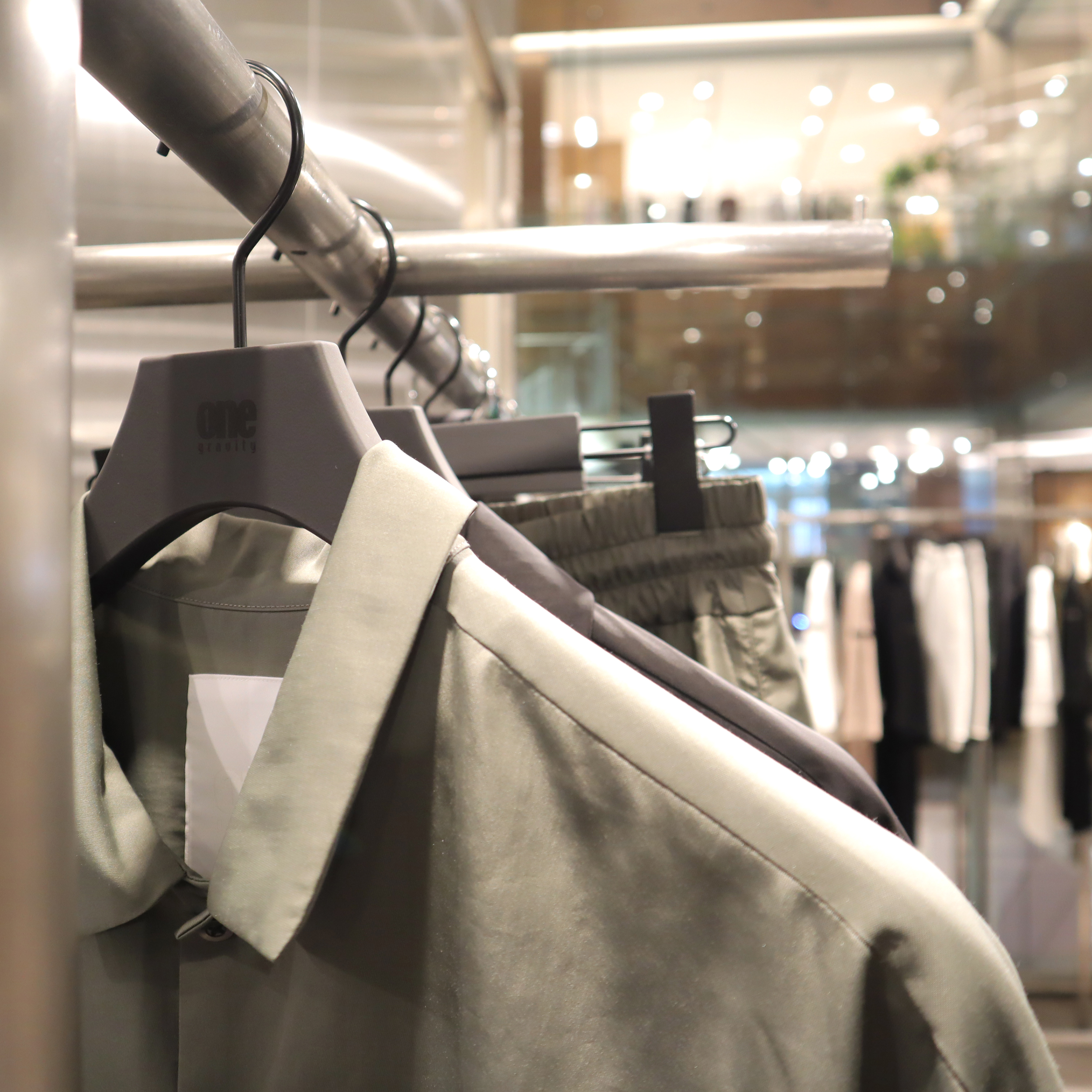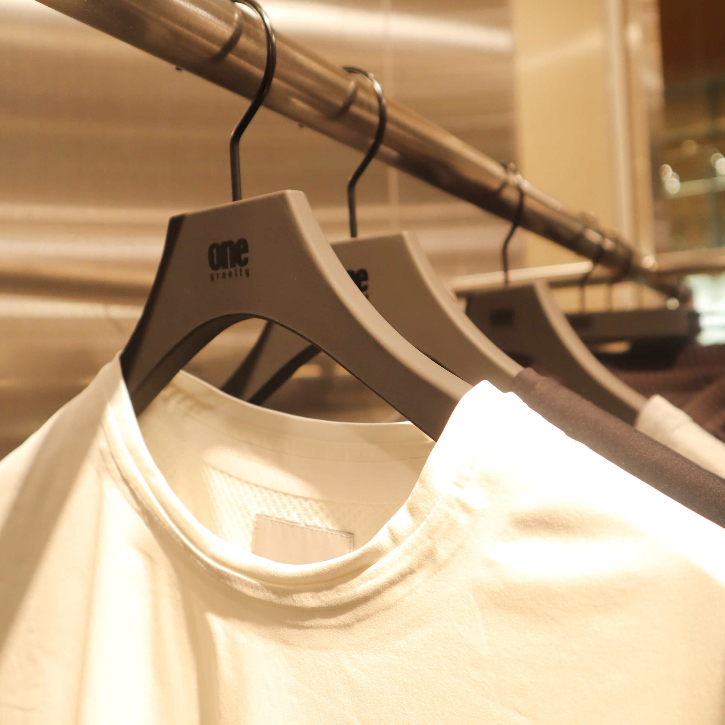 今回製作させていただいたバルミーハンガーは、内装やブランドイメージに溶け込むダークグレー。