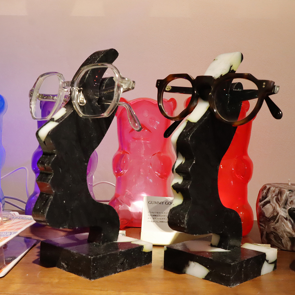 サングラスディスプレイはエッジの効いたカッコイイデザインに仕上がりました。