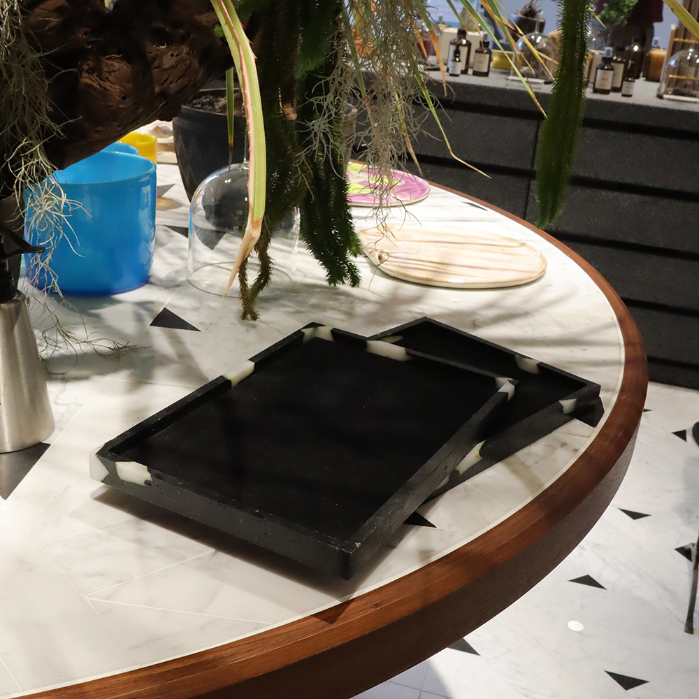 天板に植毛を施したトレーは高級感があるのでアクセサリーなどのディスプレイにも素敵ですね。
