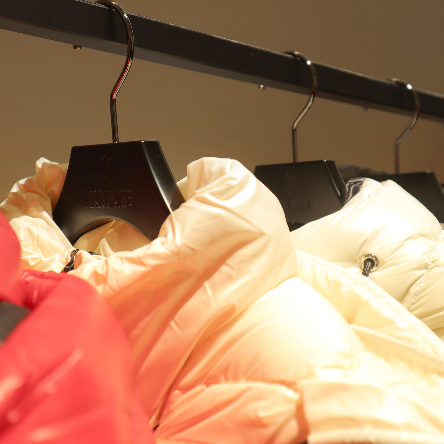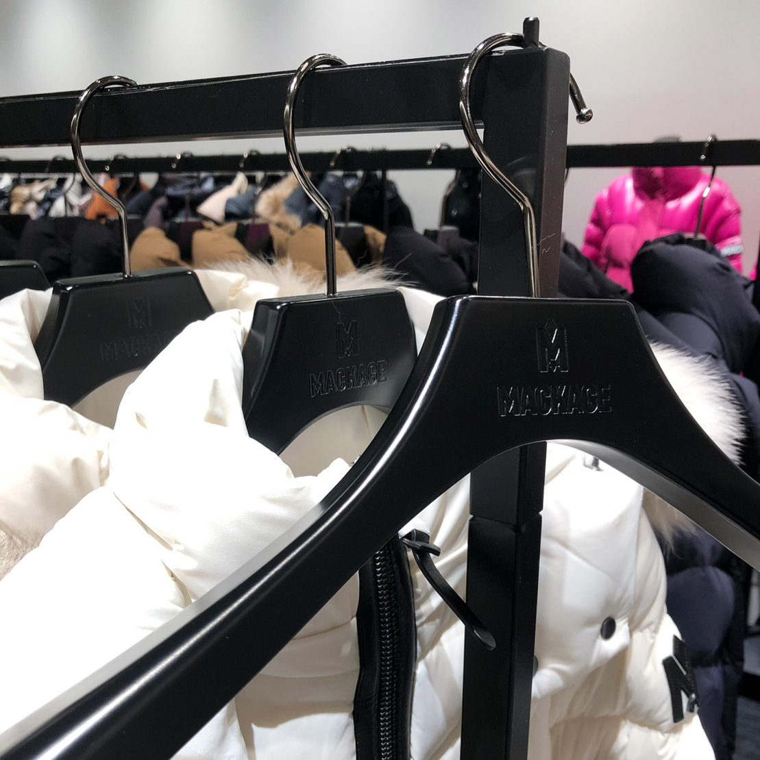 を開催中の「MACKAGE」様にオリジナル バルミーハンガーを製作させていただきました。