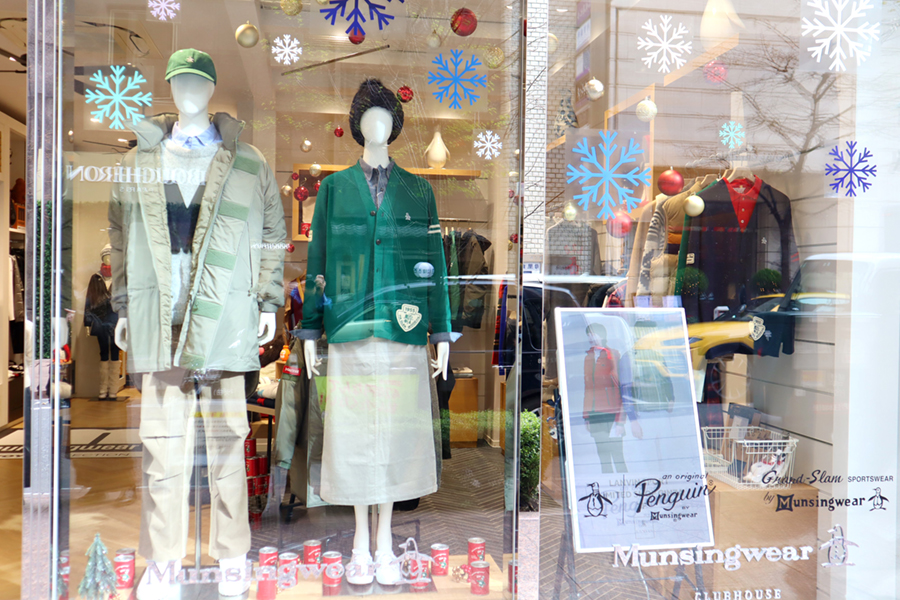 「マンシングウェア クラブハウス 銀座」様にクリスマスディスプレイ什器・フロアマットを制作致しました。1955年、世界初のゴルフウェアブランドとして誕生した「マンシングウェア」は
