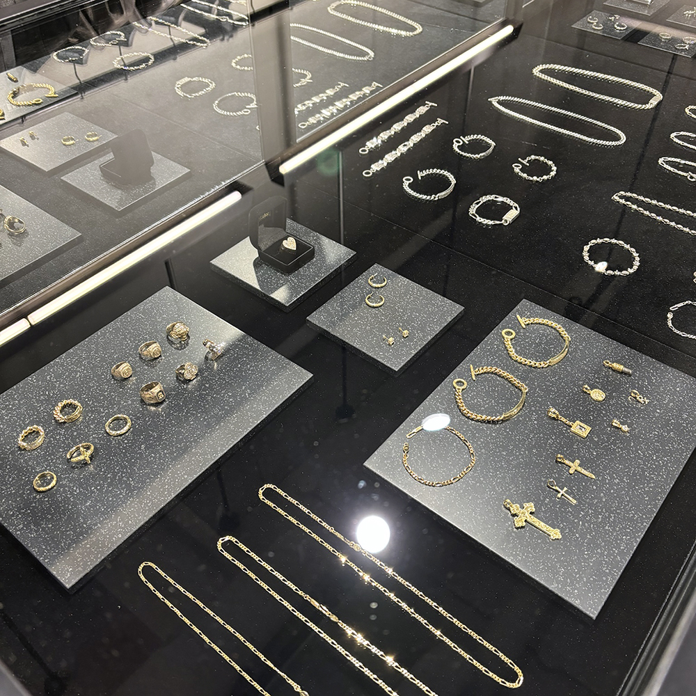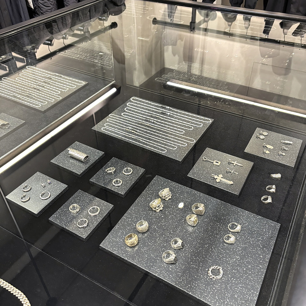 アクセサリーディスプレイは”コーリアン”という人工大理石を使っています。