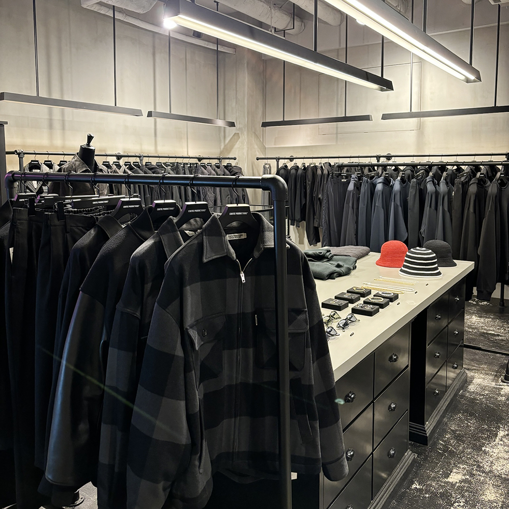 今回のハンガーとアクセサリーディスプレイは、黒色を主軸とした無彩色のアメリカンカジュアルな雰囲気にマッチするデザイン