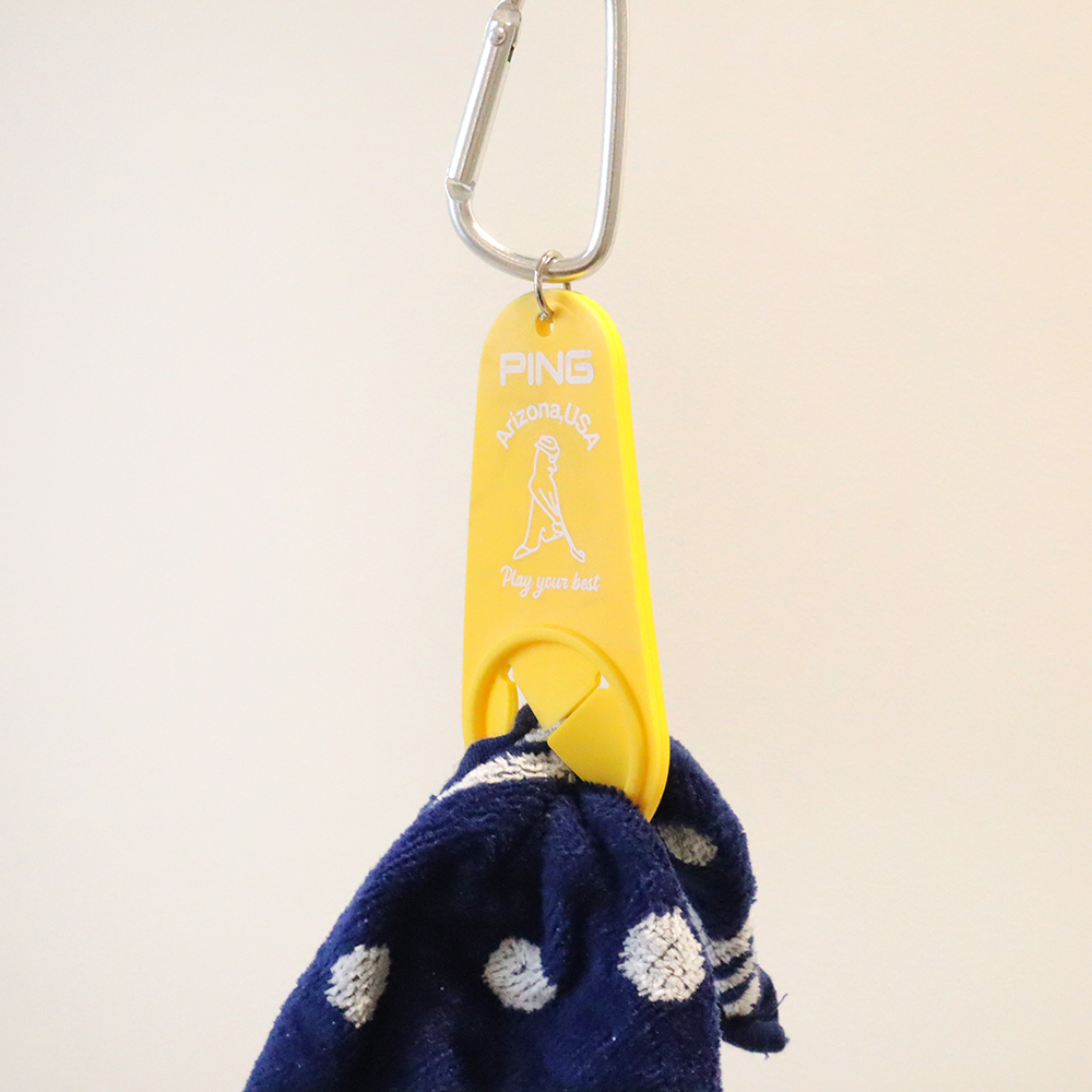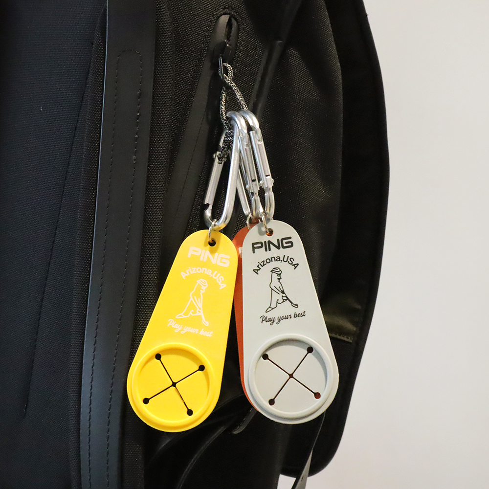 カラビナパーツも付属し、ゴルフシーンだけでなく、様々なアクティビティシーンで活用できる