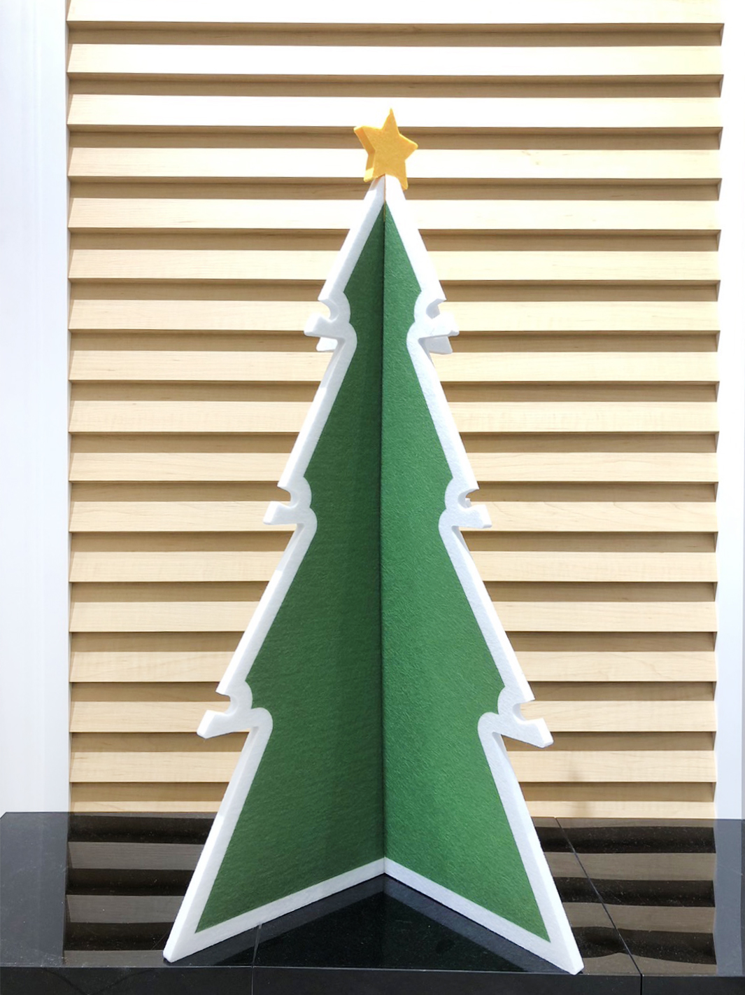 様々な形状加工にも対応でき、今回のようにオーナメントを飾れるツリーや、