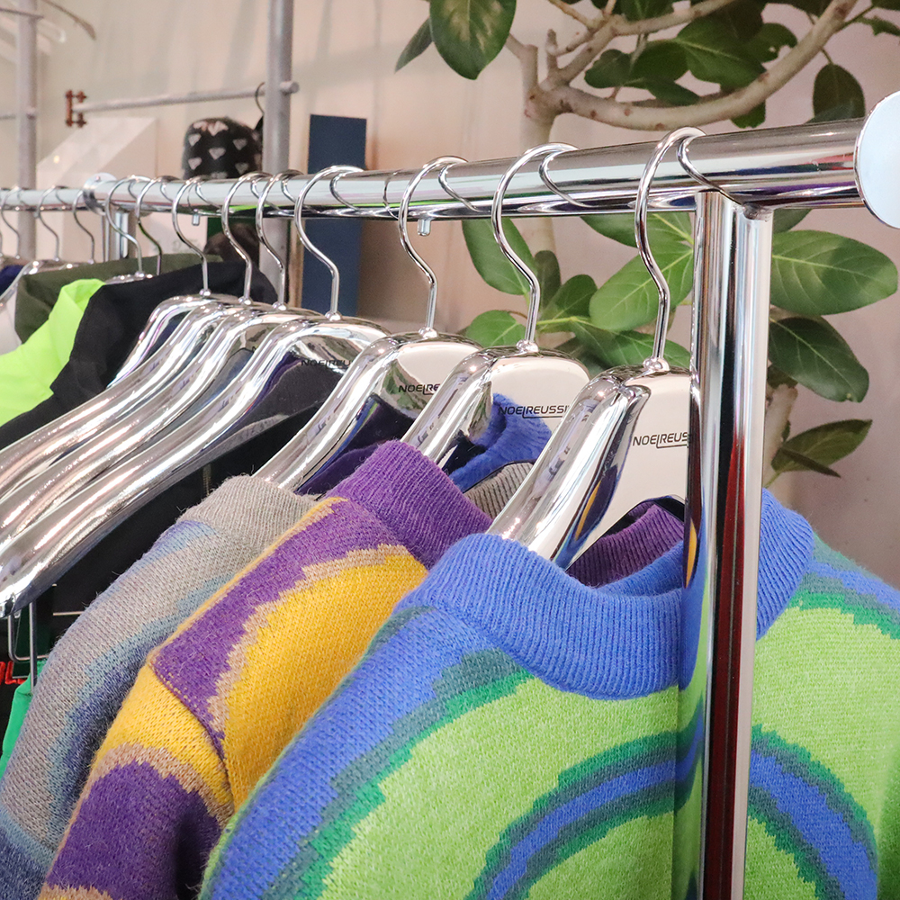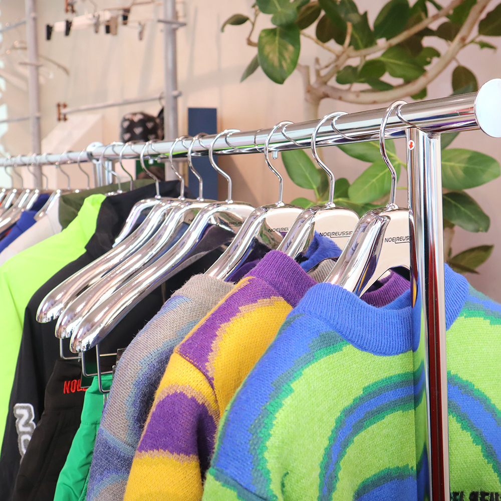 今回オープンされたPOPUP STOREでは、製作した蒸着メッキハンガーを使用いただいております。