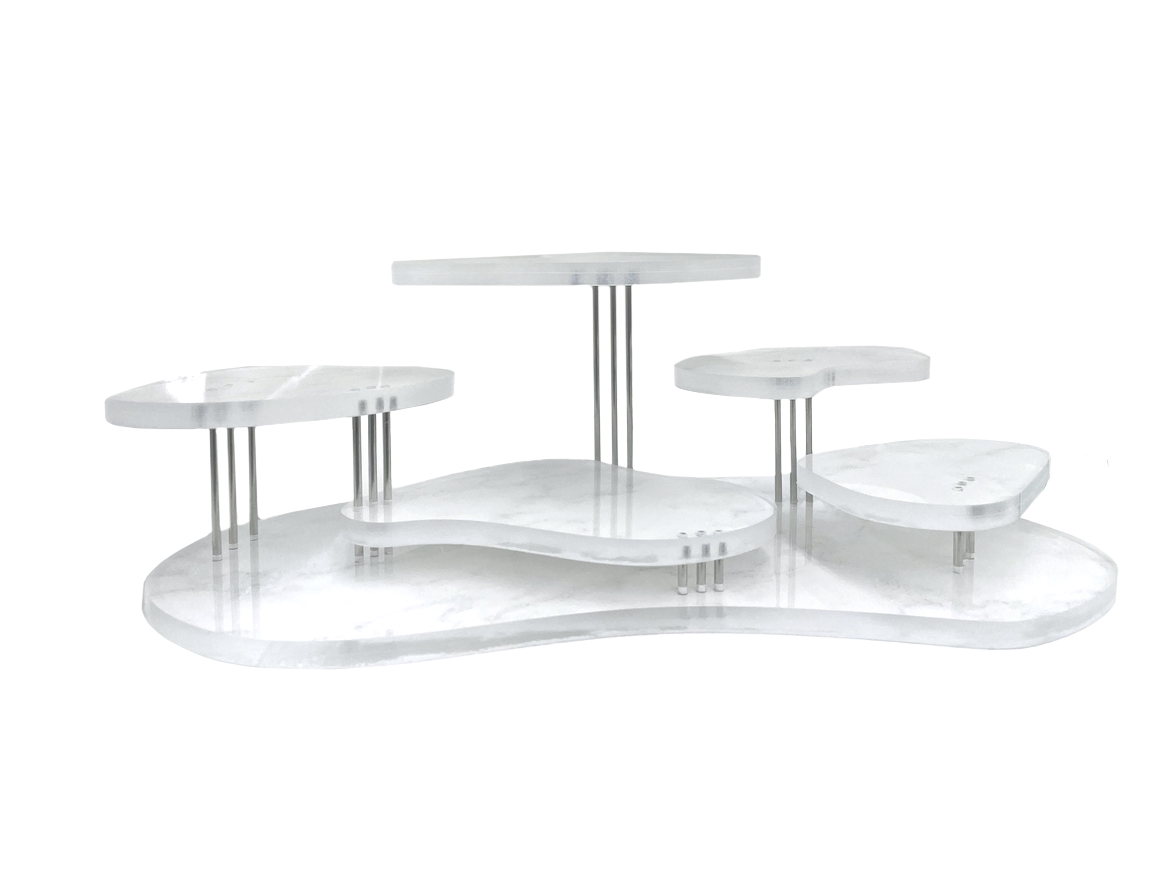 さらに、アクリルには大理石柄のシートを貼り付けており、