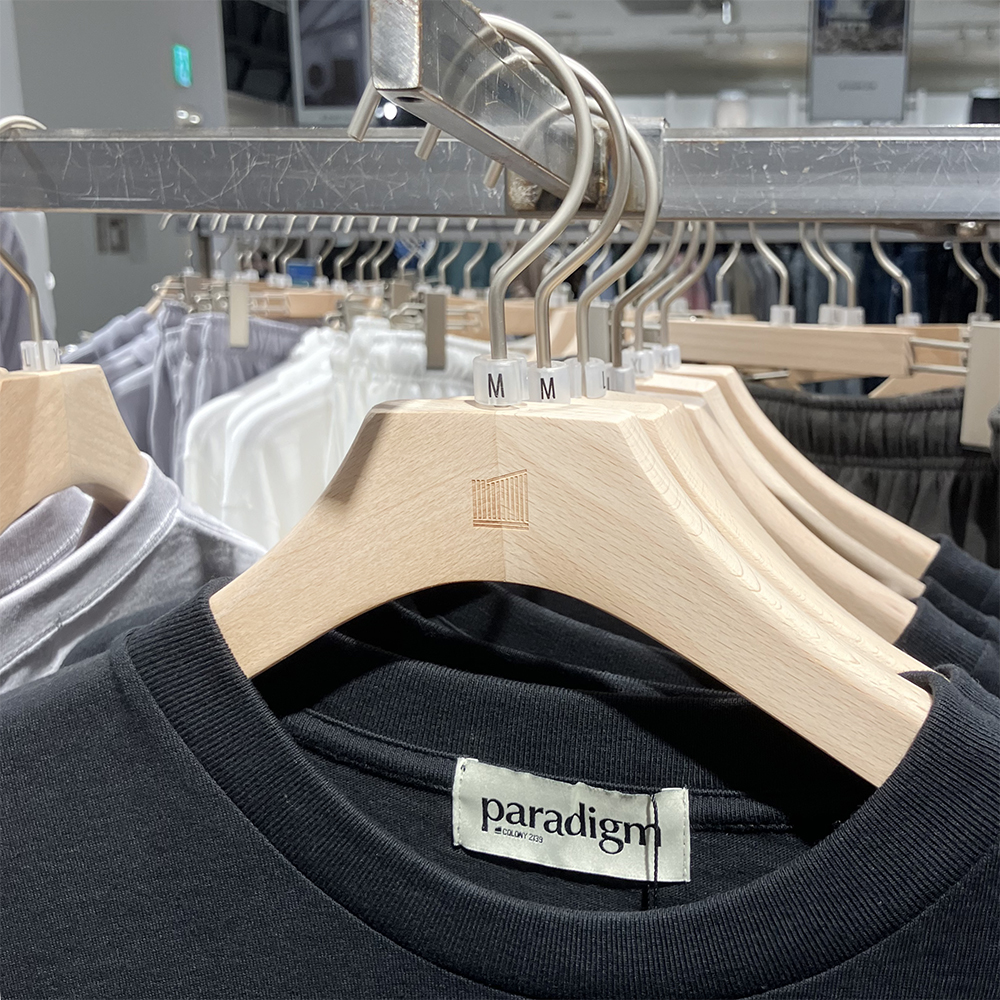 また、オリジナルの木製ハンガーも製作させていただきました。