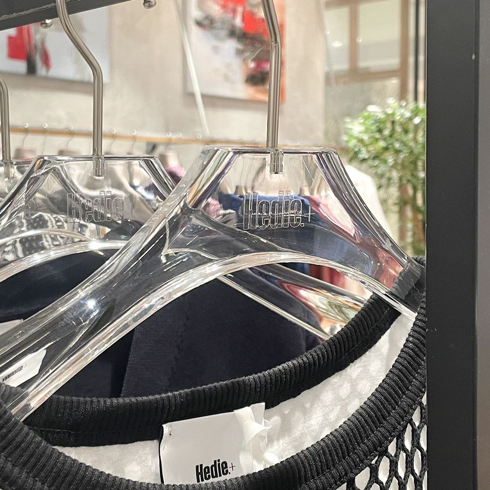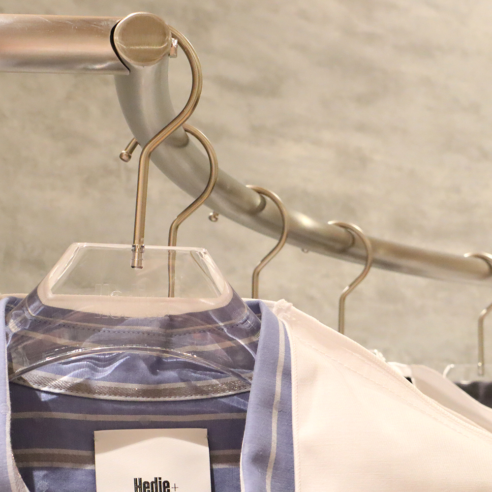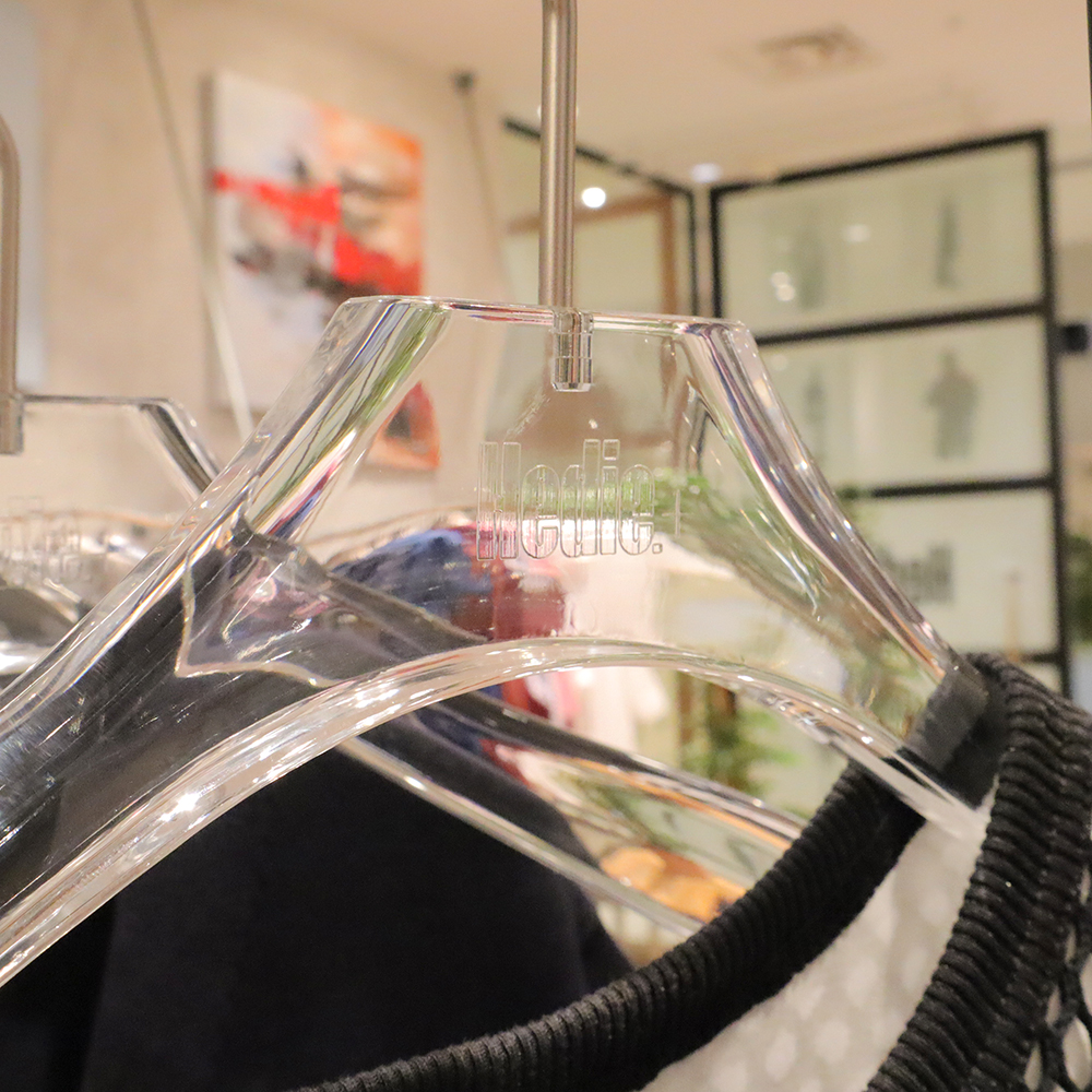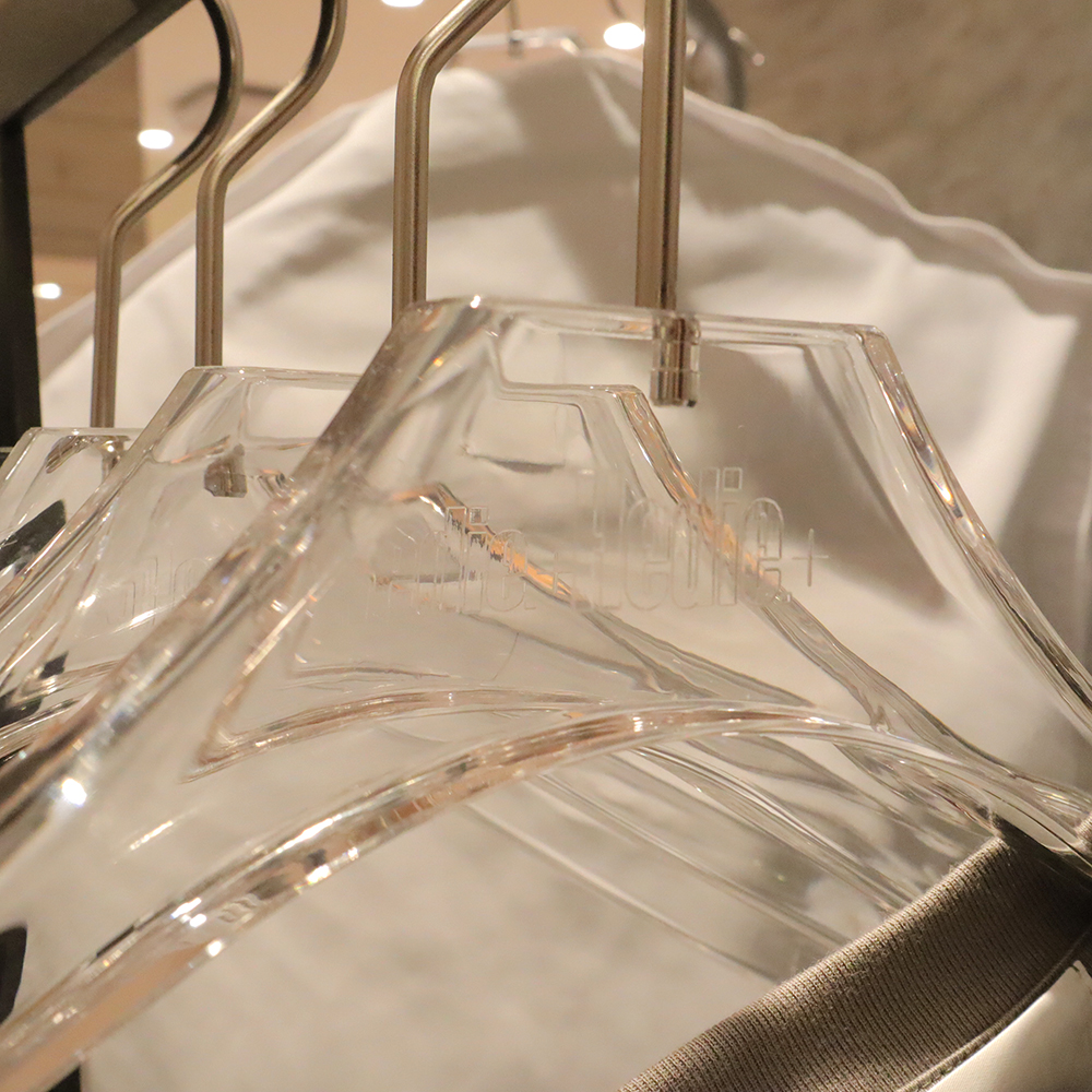 アクリルだけでなく様々な素材のハンガーをブランド様のオリジナルデザインで製作いただけます。