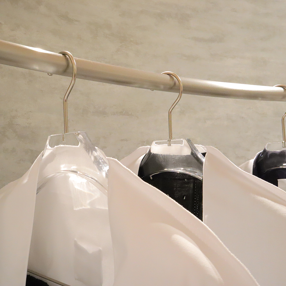 パーツはホワイトニッケルを採用して、クリアなハンガーとの統一感が素敵です。