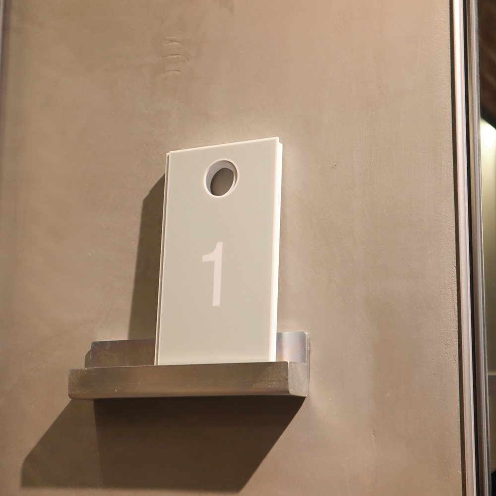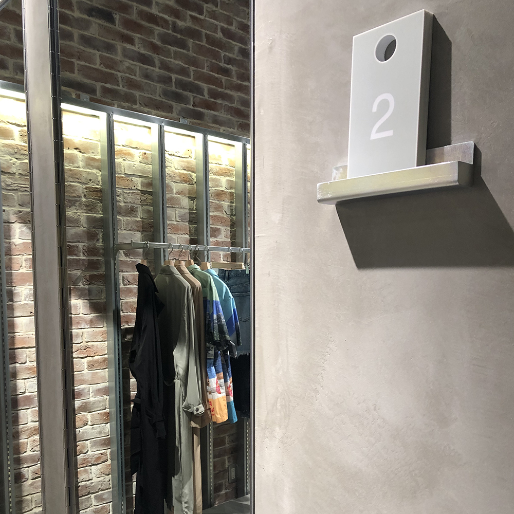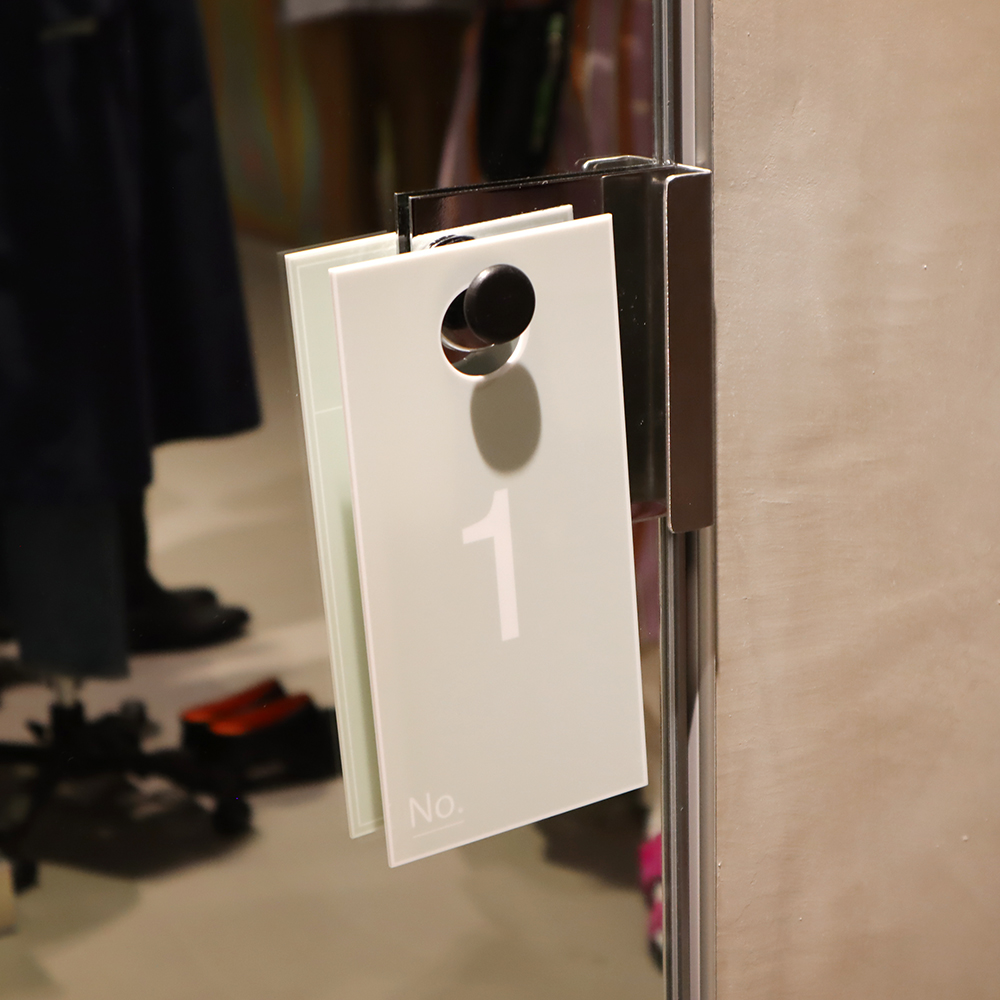 今回、新しく生まれ変わった店内のフィッティングルーム用プレートを製作させていただいております。