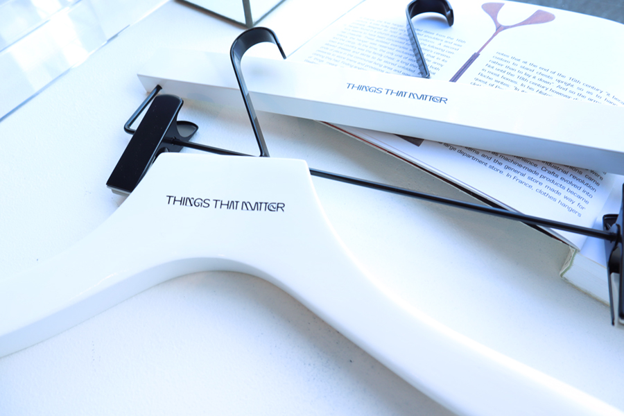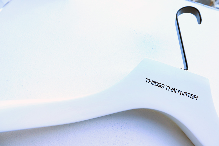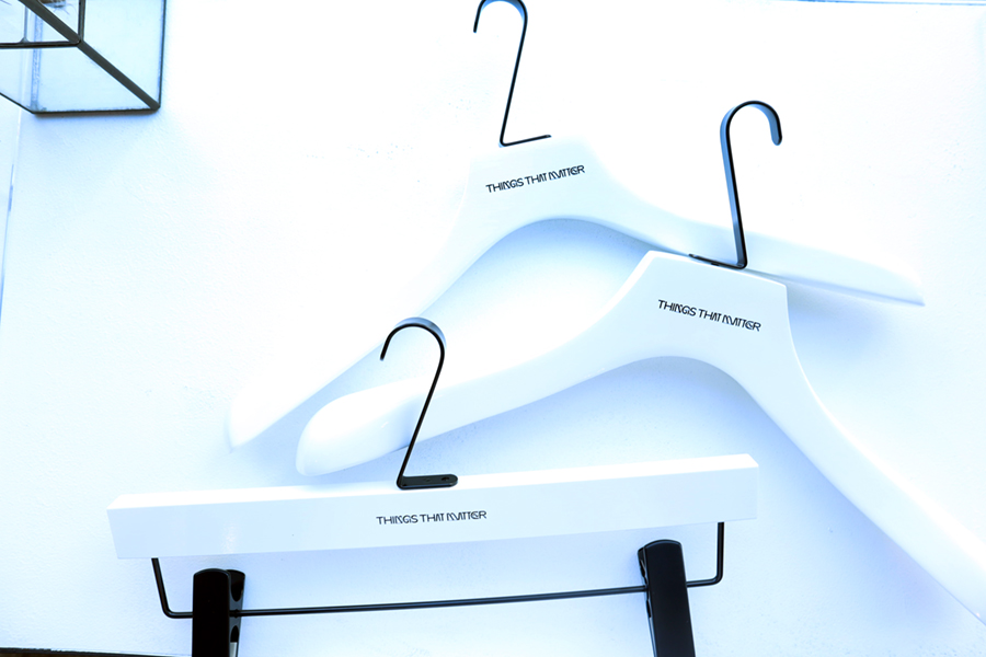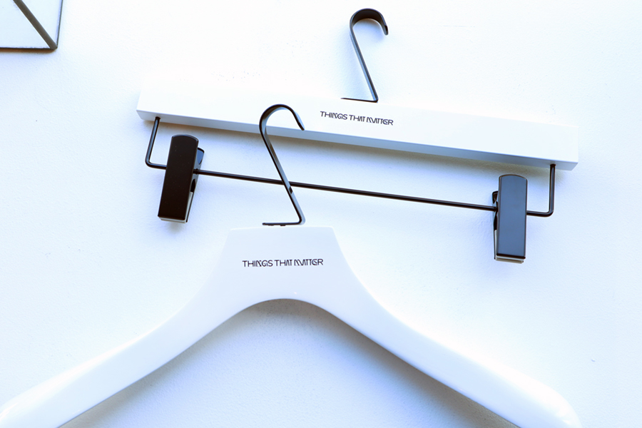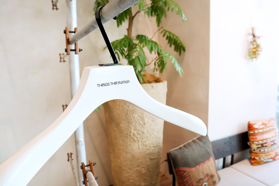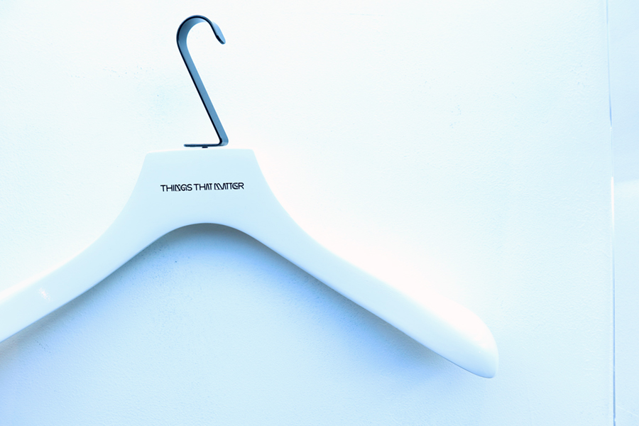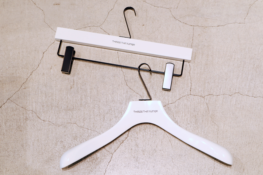 カラーは主張を控え、ブラックとホワイトの2カラーとシンプルですが、ハンガー本体の厚みを出し、掛けた時にお洋服のシルエットが綺麗に見えるよう、ボリュームのある仕様に。 それにより、「THINGS THAT MATTER」様の様々な事象やモノから想像した”色”が溢れる魅力的なアイテムの数々をより引き立てるハンガーとなっております。
