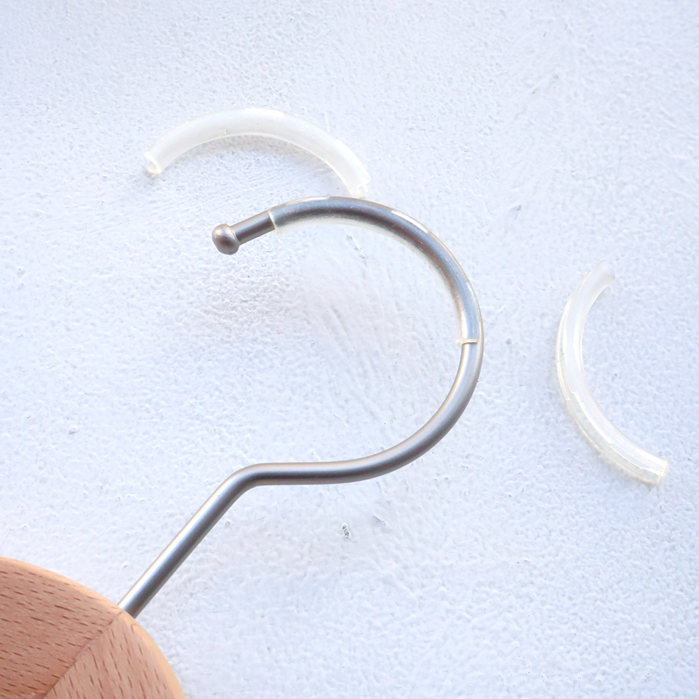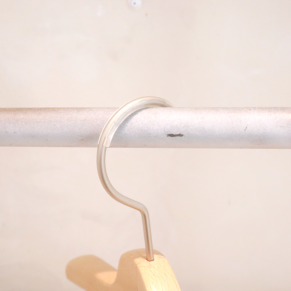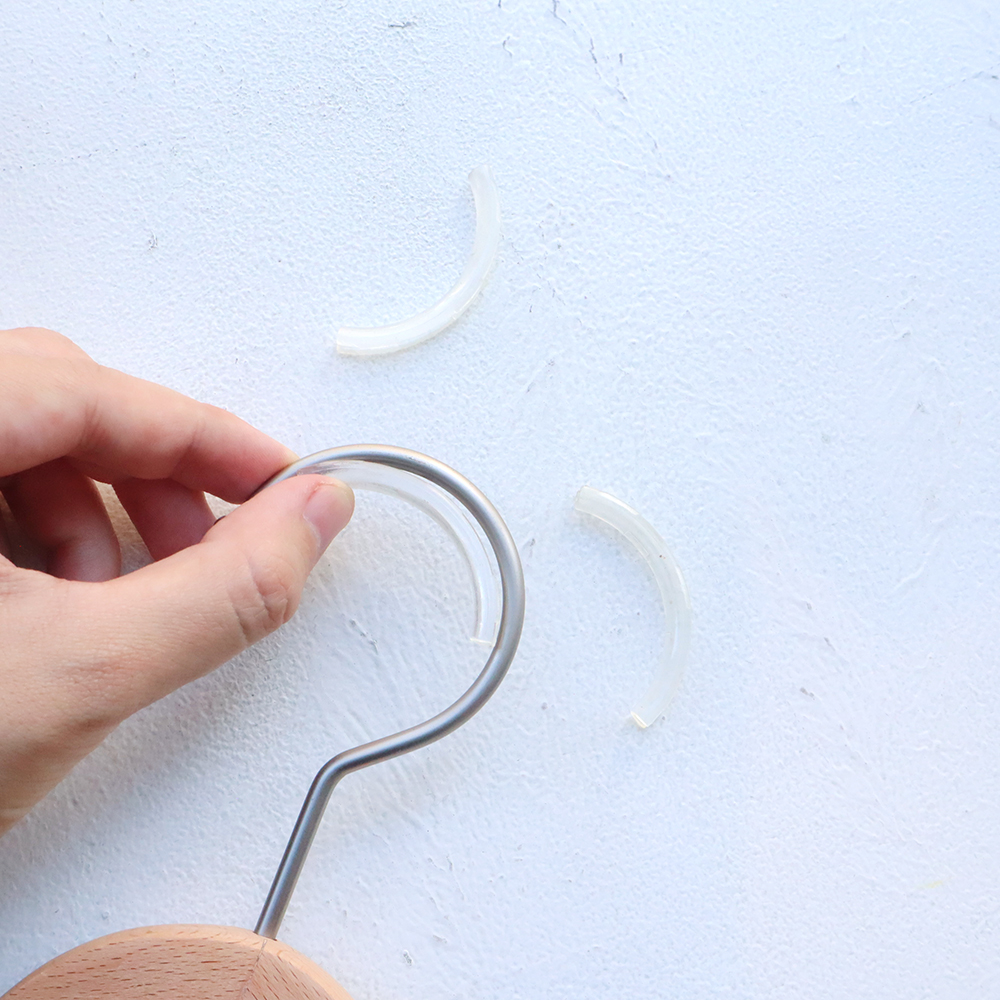備品アパレル ハンガーのフックに取り付けるすべり止めカバーです。 フックの内側にカチッとはめるだけの簡単取り付けです。 ●COLOR 半透明 ●SIZE 約w40mm ●POINT ラックやハンガーのフックに傷をつけたくない・・・というお悩みを解決します。 チャナカンパニーでは他にも様々な形状のすべり止めをご用意しております。 取り扱うお洋服の素材によってすべり止め選びも変わってきます・・・! 是非一度ご相談ください。 他すべり止め一覧はこちら https://chana-form.com/standard_cat/stopper/ お問い合わせはこちら 関連商品 【ストック商品】TO-W-0008 ボディ<レディス/茶染(アーム付き) > 【ストック商品】TO-W-0009 トルソー<レディース/クリア> 【ストック商品】すべり止め<シリコンリング /ブラウン> 【ストック商品】TO-M-0001 ボディ<メンズ/黒半艶 >