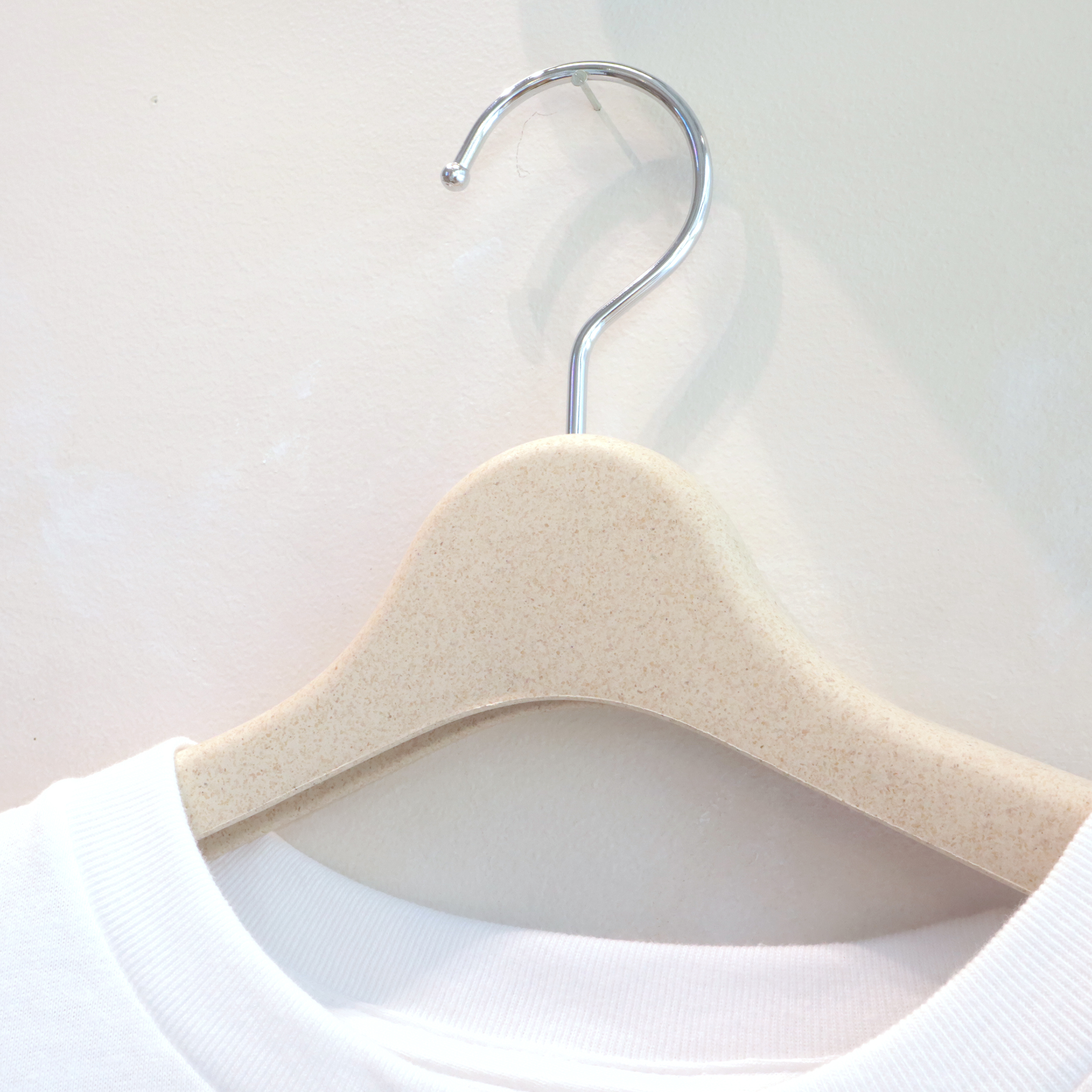 環境へ配慮し、お米の「もみ殻」を活用したバイオマスプラスチックハンガーです。