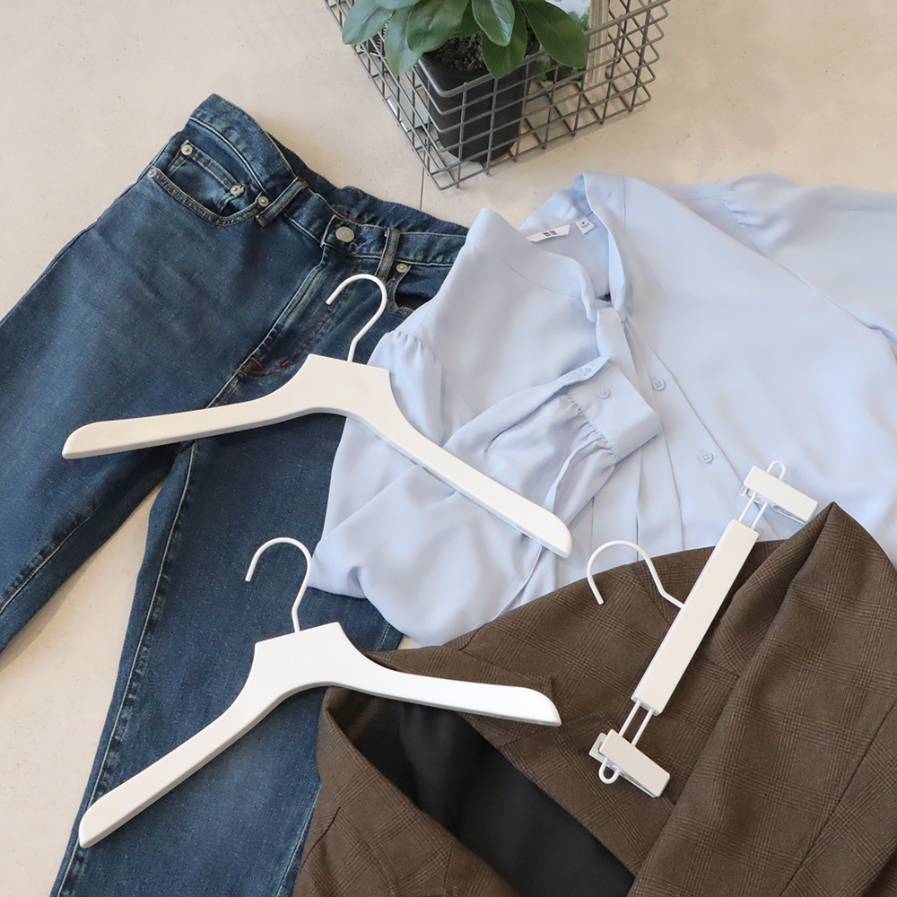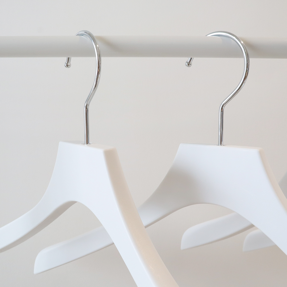 小売向け商品アパレル ベーシック ホワイトバルミーハンガー(メンズ) どんなお部屋や空間にもマッチするデザイン すぐにでも取り入れやすいアイテムです。 特許取得の一体成型により長持ちするつくりとなっています。 高級感のある雰囲気も特徴です。 お店・来客用・お家のクローゼットにどうぞ。 ●SPEC 材質:樹脂 サイズ:メンズW420*t30mm 肩幅の広いジャケットなどにもおすすめです。 カラー:白原材料 より詳しい使用方法や仕様をご覧になりたい方は最下ページのお問い合わせフォームからお気軽にご連絡ください。 ECサイト 関連商品 【オーダーメイド商品】FSC®️認証 オリジナル トレー(M) 【ストック商品】小売向け商品<スーツ用バルミーハンガー> 【ストック商品】小売向け商品<大理石柄バルミーハンガー> Balmy T-shirts