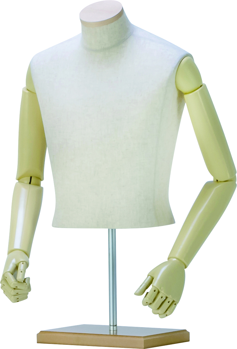 【ストック商品】TO-M-0010 トルソー<メンズ/腕ベージュ/クリア/カウンタースタンド>